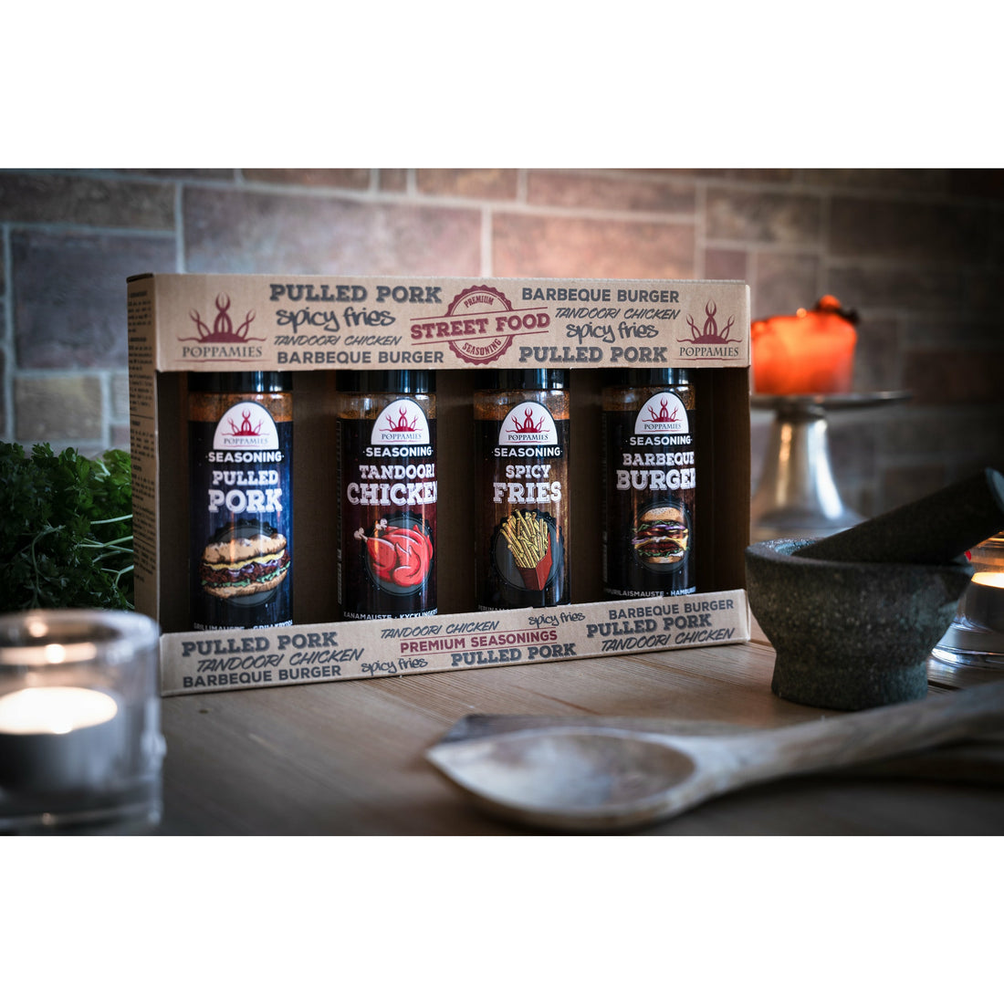 Pulled Pork Seasoning - is a mixture of spices flavored with Poppamies apple and real bourbon, which is best suited for pork. The spice mix has been specially developed to spice up pulled pork, i.e. pulled pork!